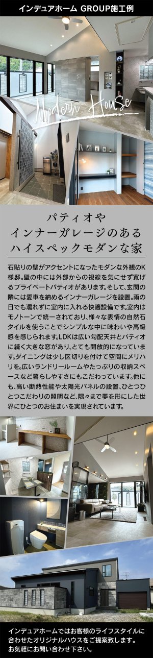 タイル、モダンスタイルの家のことなら、私たちインデュアホーム栃木が、こだわりの住宅を自信をもっ