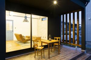 ブルーの木製ドアがポイントのリビング・ダイニング・キッチンそして嬉しいご主人の書斎もカバードポーチに面していますので、テラスでのBBQや、休日のブランチにとても便利です。何よりご主人の書斎からもテラスに出られますので、お仕事の合間の一休みに喫煙時にとても喜んで頂いております。